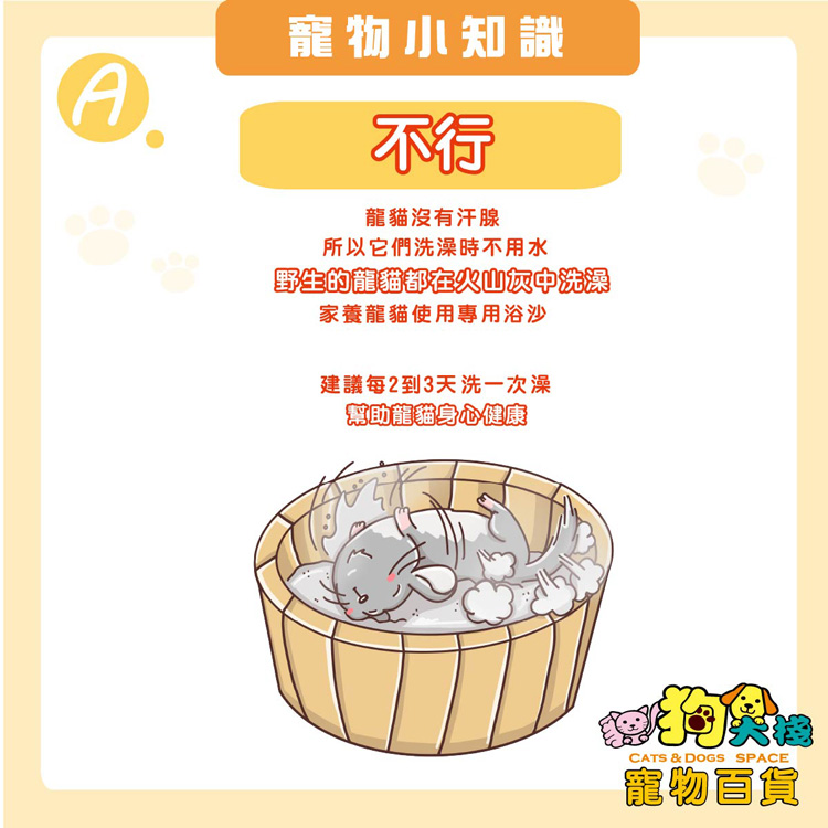 用水洗反而會因為無法完全讓龍貓身體乾燥導致生病。